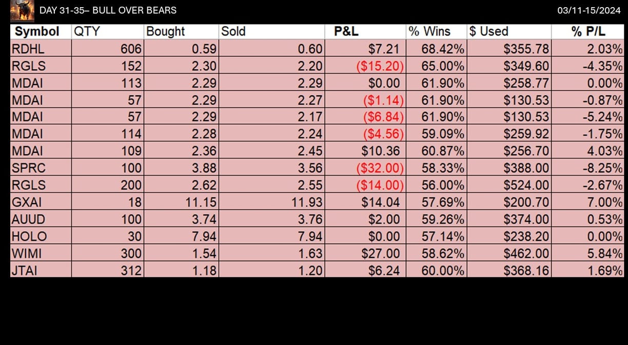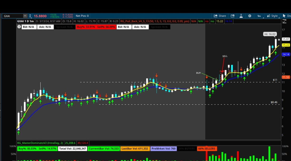 Review: The stars seemed to align for GXAI as it trended upward throughout pre-market trading on the back of positive news. Volume was strong, with a surge of buyers entering the market. Despite a challenging week, I managed to hit my daily profit target of 6% and decided to exit the trade to avoid further uncertainty, given the series of fake outs I had encountered earlier. However, GXAI's ascent persisted after I exited.